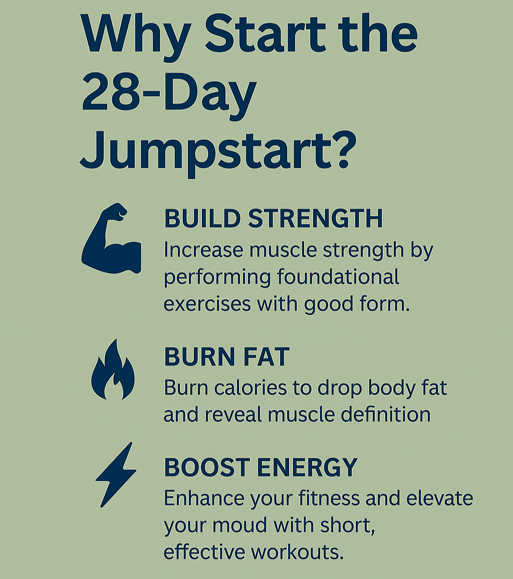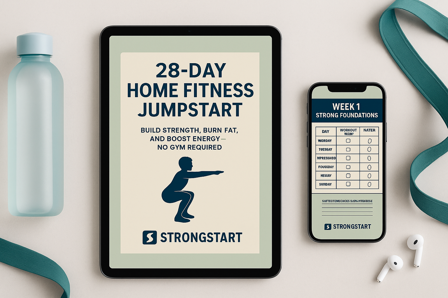 Between busy schedules, expensive memberships, and not knowing where to start, getting fit can feel impossible. That’s why we created the StrongStart 28-Day Home Fitness Jumpstart — a simple, no-equipment plan that helps you build strength, consistency, and confidence without leaving your house.